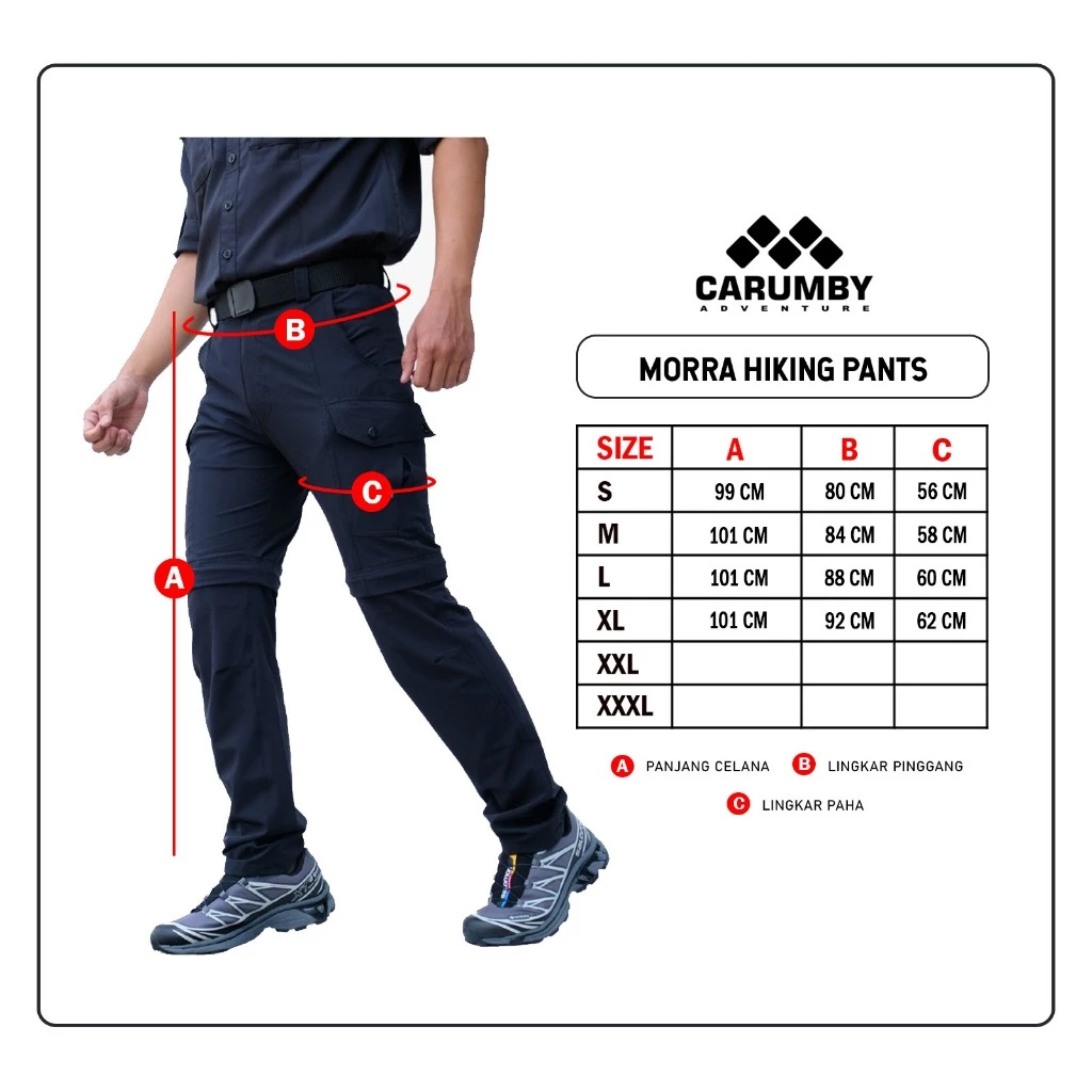 Celana gunung dengan model sambung atau convertible yang bisa di jadikan celana panjang ataupun pendek sesuai dengan kebutuhan kamu gaess